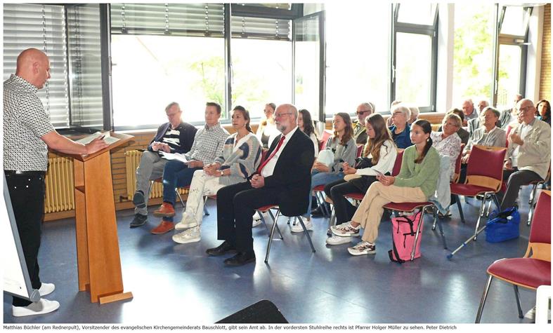 Im Gemeindesaal der evangelischen Kirchengemeinde Bauschlott hat am Sonntagmorgen nach einem gut besuchten Gottesdienst eine ebenfalls gut besuchte Gemeindeversammlung stattgefunden. Für Matthias Büchler, den Vorsitzenden der Gemeindeversammlung, war es die letzte, da er sich nicht mehr zur Wahl stellte. Für ihn rückt Karin Keller-Schwarz nach. Stellvertreter Roland Bauer war bereit, weiterzumachen. Beide Kandidaten erhielten ein einstimmiges Votum.