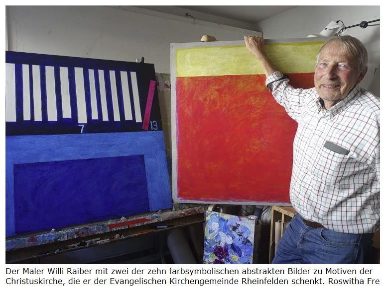 Zehn Bilder zu Motiven der Christuskirche gehen als Schenkung des Malers Willi Raiber an die Evangelische Kirchengemeinde Rheinfelden. Es sind farbsymbolische Werke über die Kirchenfenster und biblischen Inschriften.