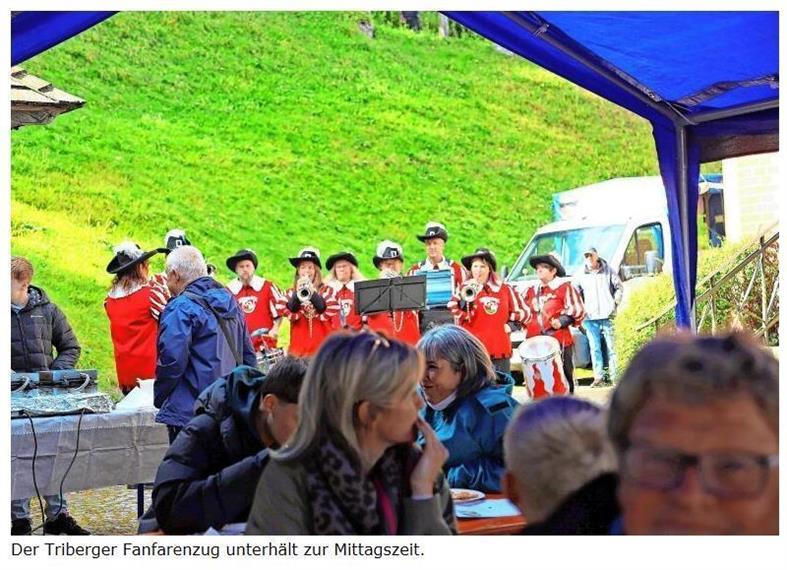 Trinitatis-Gemeinde feiert Erntedank Kleiner Basar mit viel Selbstgemachtem Orgelmusik, Fanfarenzug und Bachmann-Ensemble VON HANS-JÜRGEN KOMMERTRaumschaft Triberg – So voll hat man die Trinitatis-Kirche in Triberg schon lang nicht mehr gesehen: Zahlreiche evangelische Christen aus der Raumschaft kamen am Sonntag in das Gotteshaus. Ein üppig ausgestatteter Erntealtar lockte die vielen Besucherinnen und Besucher an und erinnerte daran, dass die Früchte des Feldes essenziell für das Wohlergehen der Menschen sind.