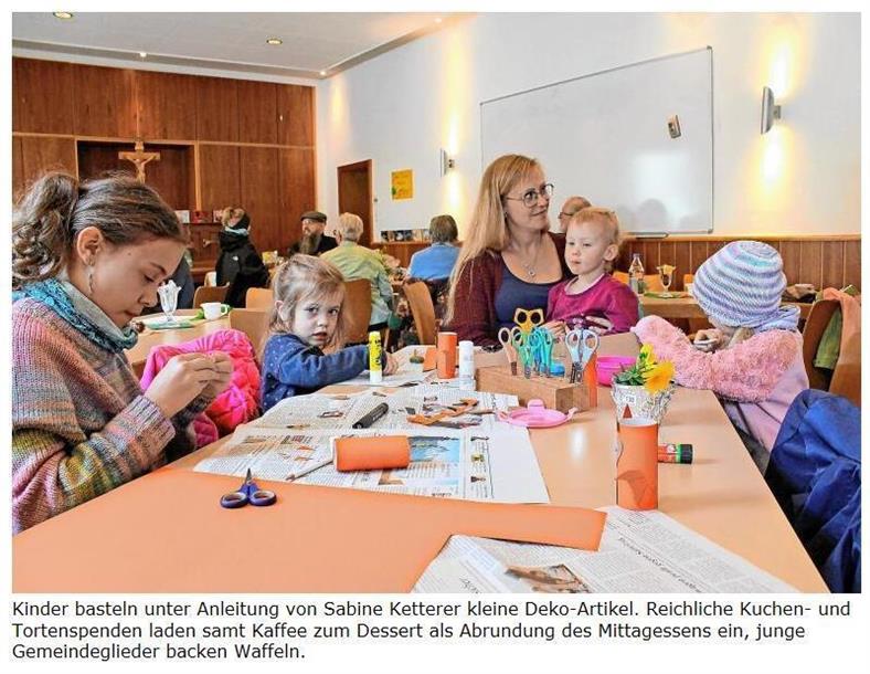 Erstmals gab es neben einer Kürbissuppe auch eine spanische Tortilla – schließlich findet im Gemeindehaus auch ein Spanischkurs statt. Reichliche Kuchen- und Tortenspenden luden samt Kaffee zum Dessert als Abrundung des Mittagessens ein. Junge Gemeindeglieder haben Waffeln gebacken.