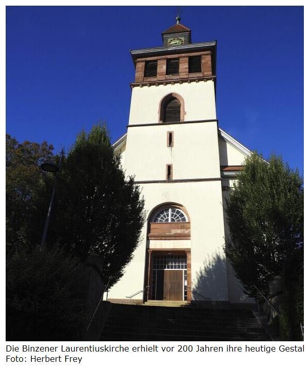 Die große Symbolkraft dieser Hymne des Protestantismus passe bestens zur Laurentiuskirche, die in ihrer das Dorf überragenden, wuchtigen Stattlichkeit in der Tat ein wenig wie eine Burg anmute, meinte der langjährige frühere Gemeinderat und Rektor der Binzener Verbandsschule, Hanspeter Vollmer, in seiner Festansprache. Ein Orientierungspunkt war sie schon weit vor 200 Jahren, aber erst 1824 erhielt sie ihre jetzige Form im Weinbrennerstil. Dass es neben enormer Tatkraft und finanzieller Mittel vor allem großen Wagemutes bedurfte, um die kleine gotische Vorgängerkirche abzureißen, den Friedhof zu verlegen und an ihre Stelle das gewaltige neue Gotteshaus mit bis zu 800 Plätzen zu bauen, strich Vollmer besonders heraus.