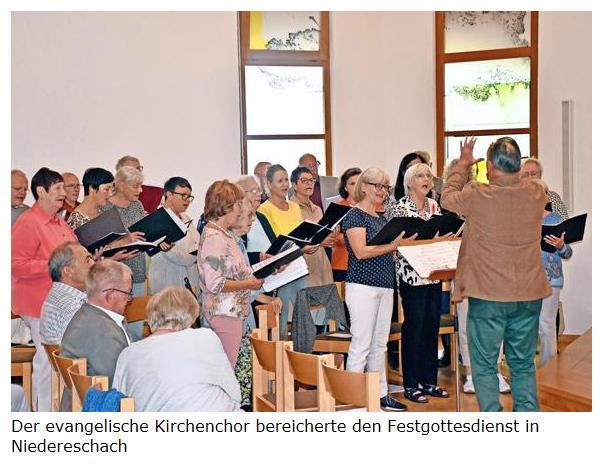 Begonnen hat der Festtag bereits am Vormittag mit einem Gottesdienst in Dauchingen. Von dort wurde, verbunden mit einer Zwischeneinkehr bei der Familie Schleicher im Längental, nach Niedereschach gewandert. Der Gottesdienst am Abend wurde vom evangelischen Kirchenchor unter der Leitung von Dirigent Hartmut Lübben umrahmt. Die Festpredigt hielt Pfarrer Peter Krech, der sich freute, dass auch sein katholischer Amtsbruder Frederik Reith, Niedereschachs Bürgermeister Martin Ragg und Alt-Bürgermeister Otto Sieber den Weg ins Gemeindezentrum gefunden hatten.