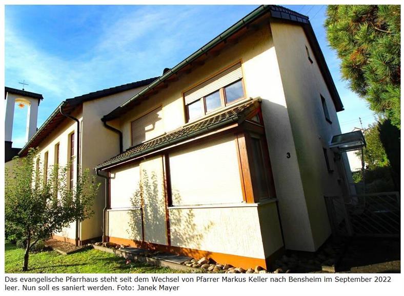 Die Evangelische Kirchengemeinde will das in die Jahre gekommene Gebäude neben dem Gemeindezentrum sanieren. Janek Mayer(jam) Die evangelische Kirchengemeinde will das in die Jahre gekommene Pfarrhaus am Gemeindezentrum sanieren und renovieren. Dort hatte zuletzt Pfarrer Markus Keller mit seiner Familie gewohnt, bevor er im September 2022 nach siebeneinhalb Jahren in Hardheim nach Bensheim wechselte. "Wir sind eine große Familie mit fünf und demnächst sechs Kindern. Das Pfarrhaus in Hardheim war einfach zu klein. Zudem sind die Wege zu meinen Schwiegereltern und meinen Eltern von Bensheim deutlich kürzer", kommentierte der in Krefeld geborene Theologe damals seine Entscheidung.