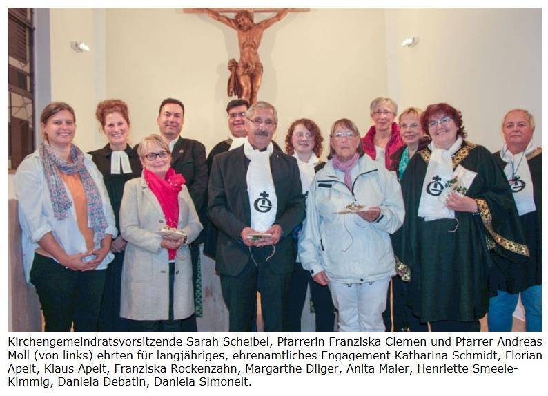 Mit dem Titel „Nebe de Kapp“, den er singend auf dem Keyboard begleitete und dem verständnisvollen „Hajo“, das, mit unterschiedlichem Verve ausgesprochen, andere Bedeutungen bekam, stieg das Stimmungsbarometer sprunghaft an. Auf Wunsch von Roland Deusch widmete er seine Sicht dem „Zukunftsmarkt für die badische Landeskirche“ mit einem Besuch der Modellgemeinde „Klickerbach“. Diese hatte in ihrer Kirche zu einer Bewertung aufgerufen. Das Resümee lautete: „Gottesdienst ist nicht out. Wir werden es schaffen“. Zum Überleben der Kirche brauche es allerdings Konzepte in der Gemeindearbeit, spannte Deusch den Bogen zur Kirchengemeinde Oberkirch und stellte die Frage: „Was will Gott selber für unsere Gemeinde?“ Sein Fazit lautete, sich gemeinsam, ständig bei Weiterentwicklung auf den Weg zu machen. Er rief die Mitarbeiter dazu auf, sich weiterhin tatkräftig in der Gemeindearbeit zu engagieren.