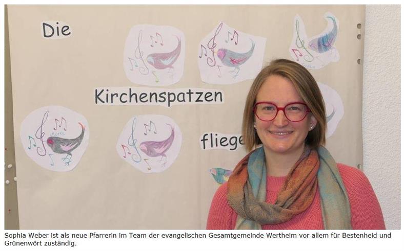 Sophia Weber ist die neue Pfarrerin für Bestenheid und Grünenwört. Außerdem gehört sie zum Team, das für die Kirchengemeinde Wertheim zuständig ist. Wir haben mit ihr über ihren Werdegang und ihre Wünsche gesprochen. Birger-Daniel GreinWertheim. Sophia Weber ist die neue Pfarrerin für Bestenheid und Grünenwört. Außerdem gehört sie auch zu dem Team, das für die gesamte Kirchengemeinde Wertheim zuständig ist.