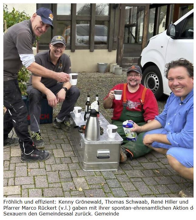 Das nächste Projekt ist die Dachreparatur im Foyer des Gebäudes aus den 1960er-Jahren, wo bei jedem Regen das Wasser in Strömen fließt und anschließend zentimeterhoch steht. Die erste Aktion stimmt zuversichtlich, sagt Rückert: „Daraus hat sich etwas entwickelt. Wir können und wollen diesen Gemeindesaal als Haus des Ehrenamts erhalten.“