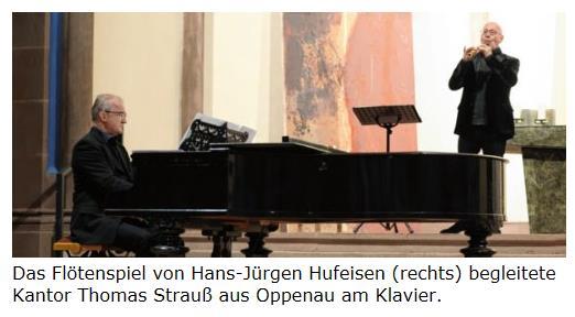 Das Besondere: Der Musiker und Komponist, der heute in Zürich lebt, spielte nicht Quer-, sondern Blockflöte und damit das einerseits sicher am meisten verbreitete und gleichzeitig wohl am meisten unterschätzte Blasinstrument. Wenige Menschen entlocken Sopran- und Altblockflöte solche Virtuosität und Klangfülle. Am Klavier begleitete ihn nicht weniger hochklassig Kantor Thomas Strauß aus Oppenau. Mehrmals im Verlauf der Meditation aufbrandender spontaner Applaus zeugte davon, wie ergriffen das Auditorium war.