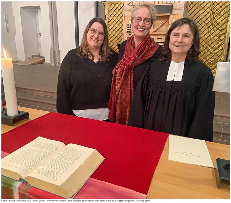 Der Kirchenbezirk hat dafür zwei halbe Stellen geschaffen. Beim Gottesdienst zu Beginn der Bezirkssynode in der Brettener Stiftskirche sind Pfarrerin Antje Pollack aus Karlsdorf und Sabrina Holzer aus Unteröwisheim in diese neue Aufgabe eingeführt worden. „Ich habe als Gemeindepfarrerin erlebt, dass Menschen an den Schnittstellen ihres Lebens auf irgendeine Weise Ausschau halten und sich öffnen“, beschreibt Gemeindepfarrerin Antje Pollack ihre Motivation für die neue Aufgabe. Und genau da will sie als Seelsorgerin allen Menschen Hilfe und Unterstützung durch den Segen bieten.