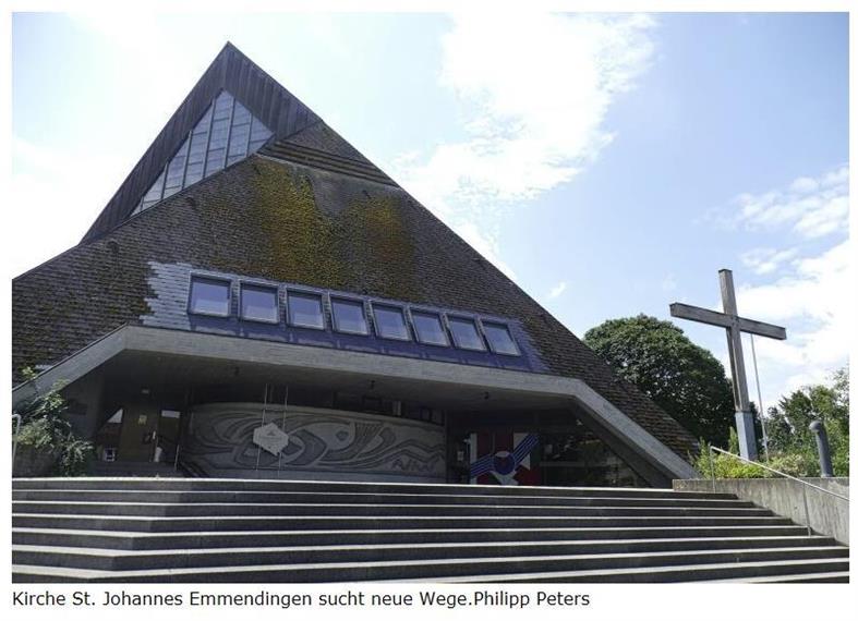 Vor dem markanten Doppelzelt aus Holz und Beton, der katholischen Kirche St. Johannes im Emmendinger Stadtteil Bürkle-Bleiche, steht ein rotes Schild. „Diese Kirche befindet sich im Moment auf einer Reise“, steht dort. „Es ist eine Reise, die (wie es gute Reisen so an sich haben) ein wenig ungewiss ist. Klar ist nur: An diesem Ort soll sich das Leben tummeln, es soll ein Ort sein, an dem jeder und jede sich wohl fühlt, unabhängig von der eigenen Konfession.“ Unter dem Motto „Mach' mit in St. Johannes“ lädt die Kirche zur Beteiligung ein. Ziel ist das Konzept einer hybriden Nutzung – als Gotteshaus und für vieles andere.