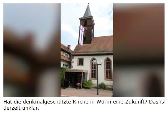 Pforzheim-Würm. Das Thema mit dem größten Diskussionsbedarf bei der Ortschaftsratssitzung in Würm am vergangenen Donnerstag war der Bericht von Pfarrer Gregor Bergdolt über die Veränderungen in der evangelischen Kirche und die daraus resultierenden Konsequenzen für Würm. Wegen Personalmangel und sinkender Einnahmen infolge vieler Austritte hat die Stadtsynode Pforzheim beschlossen, die Pfarrgemeinden in einer einzigen Gesamtgemeinde Pforzheim zusammenzuführen. Die Aufgabe zahlreicher Kirchengebäude hat zur Folge, dass es auch für den Erhalt der Würmer Kirche keine Gelder aus Kirchensteuern mehr geben wird.