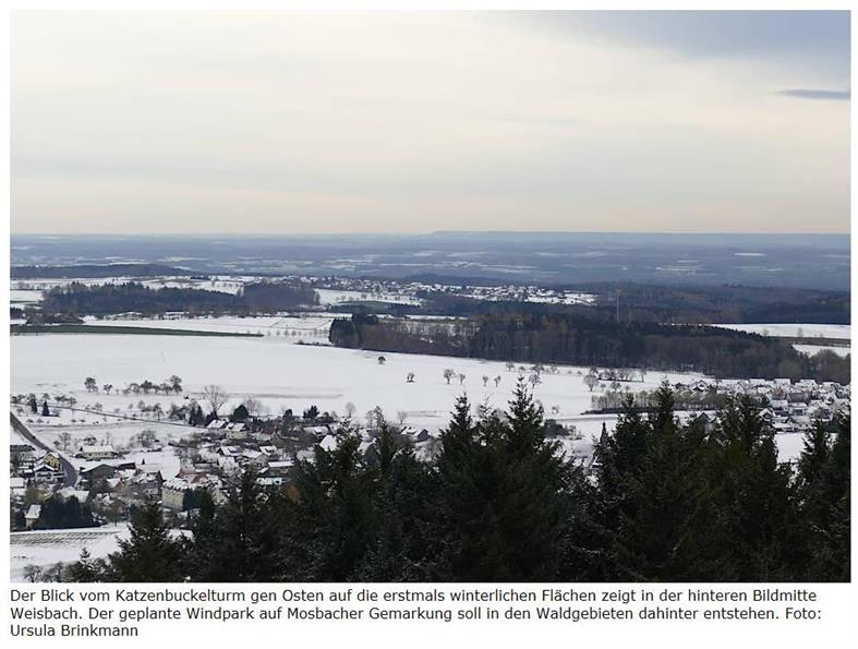 Eines aber stößt manchem oben auf den Winterhauch sauer auf: Am Informationsabend war mehrfach Kritik darüber zu hören, dass die Entscheidungen in Mosbach und vom Mosbacher Gemeinderat getroffen wurden, man in Waldbrunn aber damit leben müsse. "Wir sind zweimal gestraft", ließ sich eine Weisbacherin vernehmen, "erst die große PV-Anlage und nun noch die Windräder."