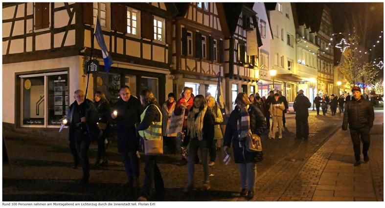 Die Friedenstage enden traditionell mit dem Lichterzug durch die Innenstadt. Am Montag brachten Schulklassen, Ministranten und Mitglieder des Jugendgemeinderats an mehreren Stationen ihre Gedanken zum Thema Frieden mit kreativen Beiträgen zum Ausdruck. Musik, Lesungen und symbolische Aktionen sollten zum Nachdenken anregen und den Geist der Solidarität spürbar machen.