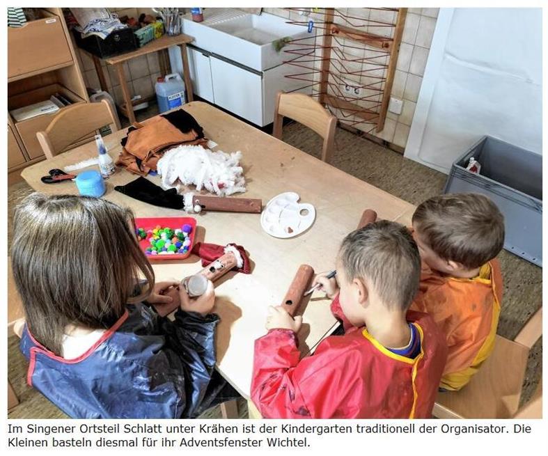 Schlatt unter Krähen: In Schlatt unter Krähen (Singen) werden die Adventsfenster seit dem 1. Dezember täglich um 18 Uhr geöffnet. Über die Standorte informieren Aushänge im Rathaus, am Kindergarten und am Lädele.