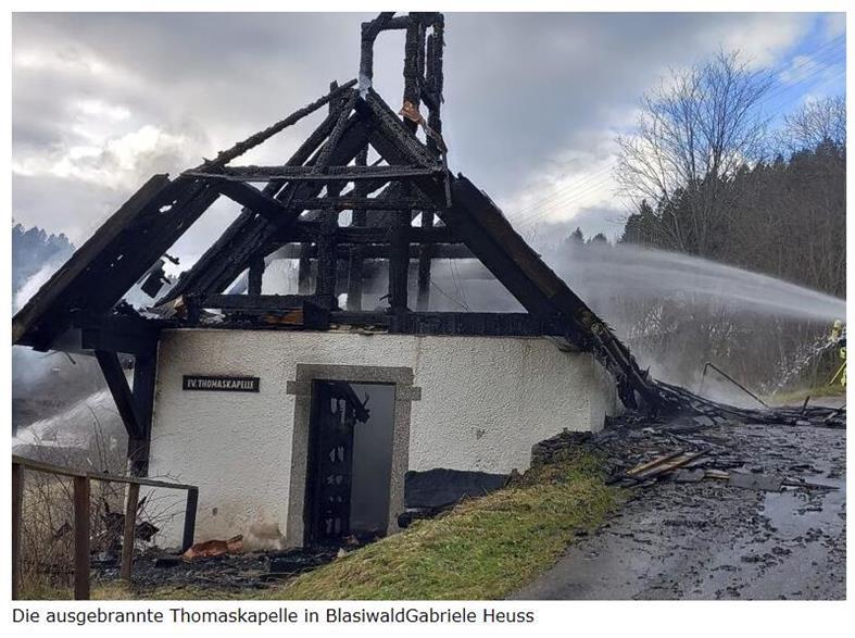 Am vergangenen Dienstag ist die mehr als 200 Jahre alte Thomaskapelle in Schluchsee-Blasiwald vollständig ausgebrannt. Die Polizei vermutet einen technischen Defekt als Ursache.