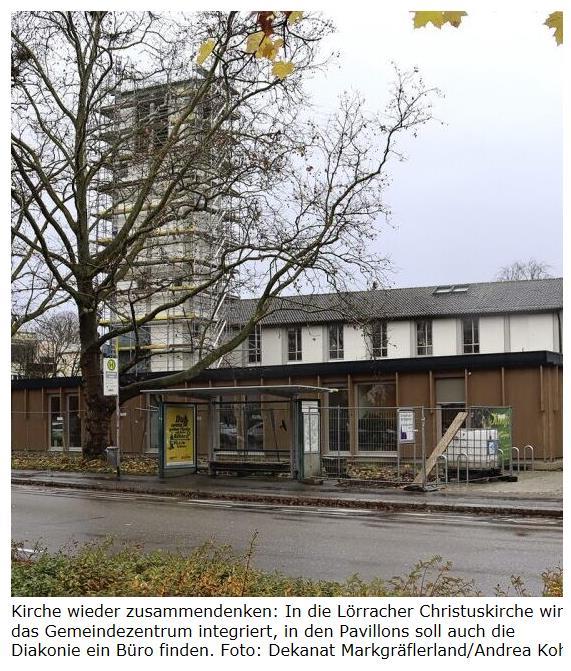 Stärker als in der Vergangenheit will man in der evangelischen Kirche künftig betonen, dass Seelsorge und Glauben, dass soziales Engagement für Senioren und Kinder und Gottesdienste unterschiedliche Seiten derselben kirchlichen Medaille sind. „Wir wollen Kirche wieder zusammendenken“, sagt Dekanin Bärbel Schäfer. Für Pfarrer Schulz wie auch für Öffentlichkeitsreferentin Kohl gibt es für den skizzierten Neuanfang der evangelischen Kirche vor Ort inmitten all der Baustellen kein schöneres Symbol als den Umbau der Lörracher Christuskirche. Dort, an der Nansenstraße, wird gerade das Gemeindezentrum in die Kirche integriert. Im neu entstehenden Komplex soll demnächst nicht nur die erste vom Dekanat veranstaltete Hochzeitsmesse über die Bühne gehen, sondern in einem Pavillonanbau auch ein Büro der Diakonie eingerichtet werden. Robert Bergmann