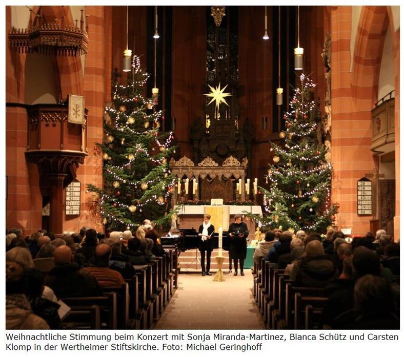 WERTHEIM. Weihnachtliche Musik aus drei Jahrhunderten hat es am zweiten Weihnachtsfeiertag in der Wertheimer Stiftskirche gegeben. Für die Sopranistin Sonja Miranda-Martinez und die Altistin Bianca Schütz ging es, begleitet vom Bezirkskantor Carsten Klomp, dabei chronologisch durch drei Jahrhunderte.
